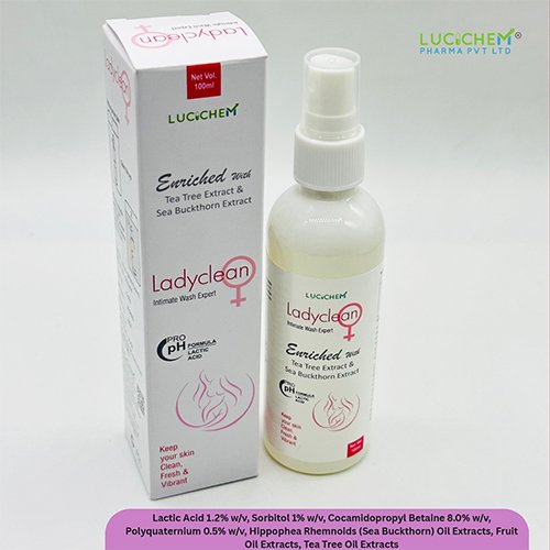 Therapeutic Use : LADYCLEAN LIQUID SPRAY contains various ingredients like Lactic Acid, Sorbitol, Cocamidopropyl Betaine, and more. It is used for feminine hygiene and vaginal health.