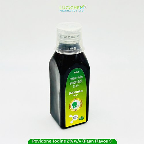 PDPAAN GARGLE contains Povidone-Iodine 2% w/v and is commonly used as an oral antiseptic gargle. It helps reduce bacteria and microbes in the mouth and throat and is often used for conditions like sore throat, mouth infections, and oral hygiene. Povidone-Iodine has broad-spectrum antimicrobial properties.